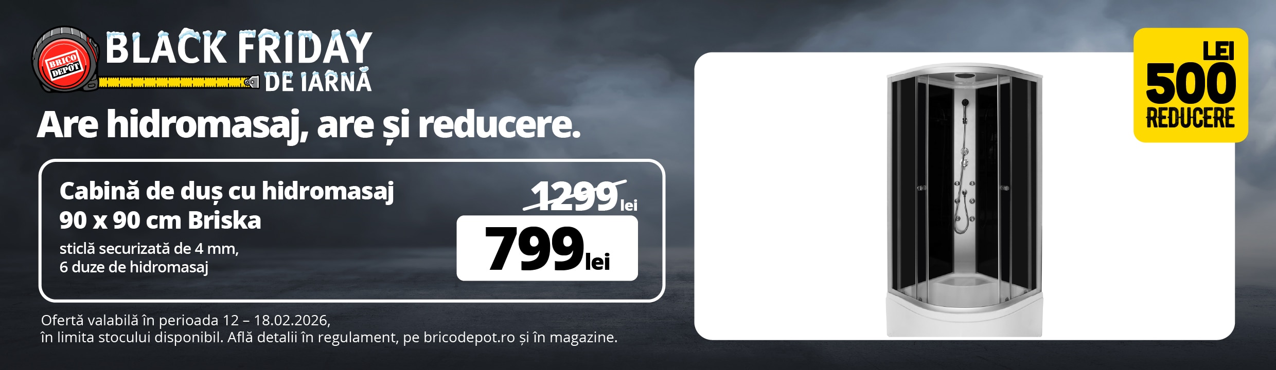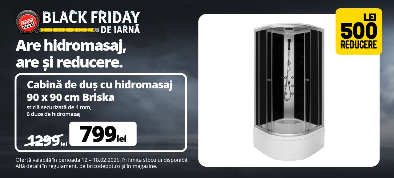 Cabina dus cu hidromasaj Briska, semirotunda, 90 x 90 x 210 cm, sticla securizata 4 mm, profil cromin stoc