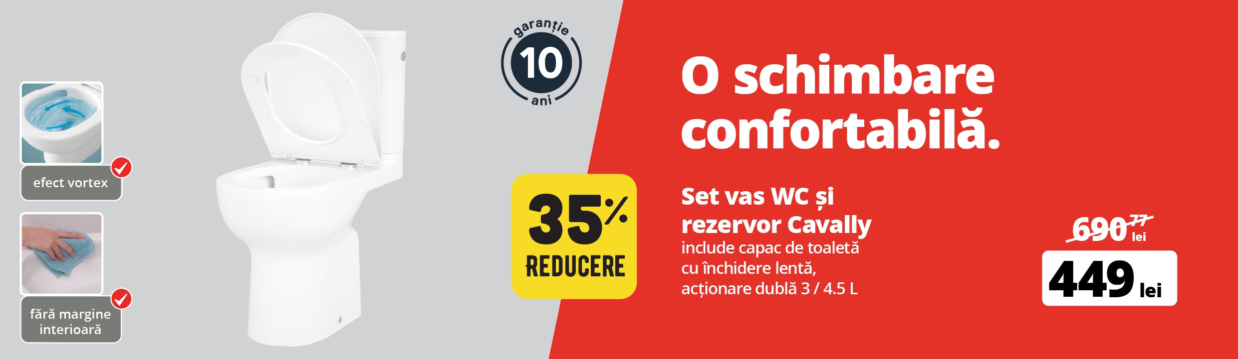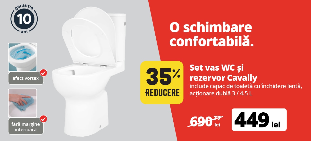 Set vas WC si rezervor GOODHOME Cavally, ceramica, evacuare orizontala, capac SoftClose, albin stoc