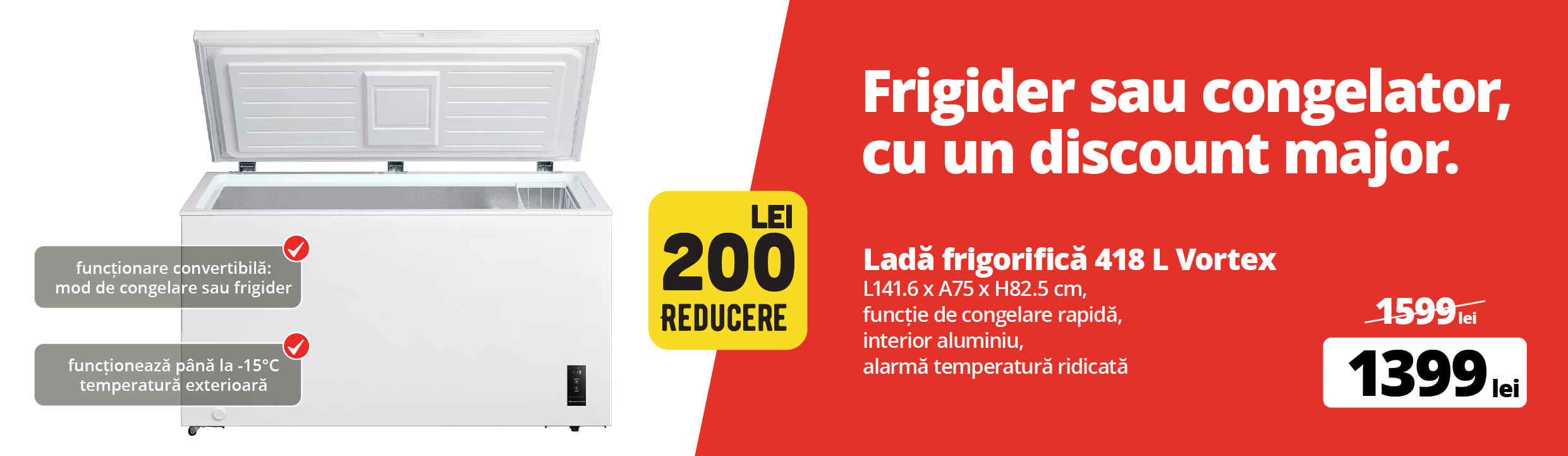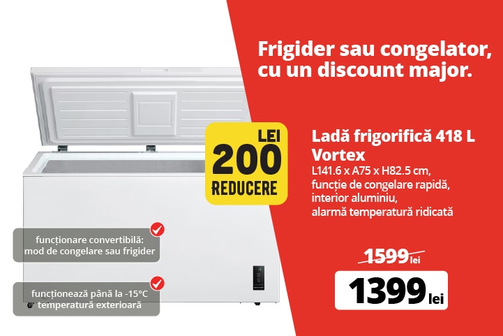 Lada frigorifica VORTEX VCF42SWH01M, 418 l, H 82.5 cm, Clasa E, albin stoc