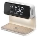 Ceas desteptator cu incarcare wireless pentru telefon, 15W, PROMATE Lumix,, alb
