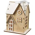 Decoratiune casuta LED, lemn, maro-alb