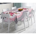 Fata de masa Flowers, poliester + bumbac, 140 x 180 cm, roz-gri