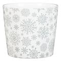 Ghiveci, rotund alb cu fulgi zapada argintii, 15 cm • Scheurich