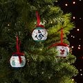 Glob Craciun model pinguin, 7.3 cm, alb-albastru