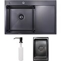 Pachet chiuveta bucatarie SANDONNA HD7850, 1 cuva, inox + picurator + dozator sapun, negru