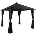 Pavilion gradina cu LED GOODHOME Gening, 3 x 3 x 2.86 m, poliester si aluminiu, negru