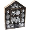 Set 32 decoratiuni pentru brad Craciun, plastic, argintiu