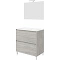 Set mobilier baie Lisabona, cu lavoar si oglinda, baza 86 x 51 x 92 cm, PAL si ceramica, gri