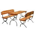 Set mobilier gradina/terasa/berarie, culoare maro, lemn, 6 persoane, masa + 2 banci cu spatar • Linz